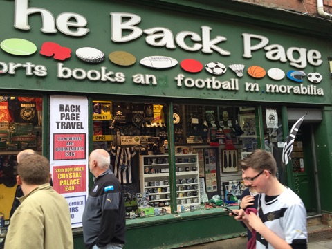 The Back Page. Ett stenkast från St James´och snett mittemot Rosies Bar.”Football Perverts Paradise”.
