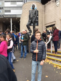 Min son ställer entusiastiskt upp på bild framför Sir Bobby Robson.